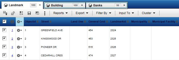 If you have selected multiple features of different types, each set of features is grouped into its own tab in the Results window. When you select new features, the newly selected group is automatically displayed on a tab in the foreground. All previous selection groups are now considered inactive and display on tabs in the background.