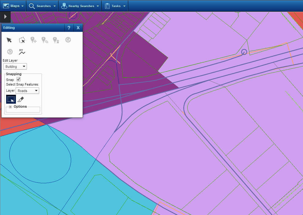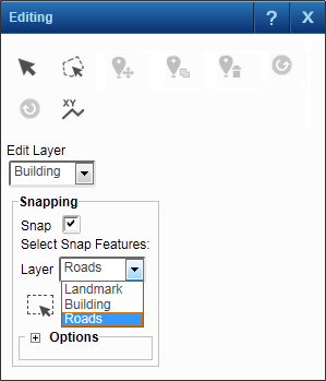 • For example, if you want to add new buildings to the map and have them snapped to the closest roads, use the Select Snap Features tool to select those roads.