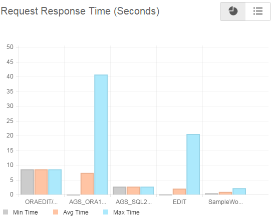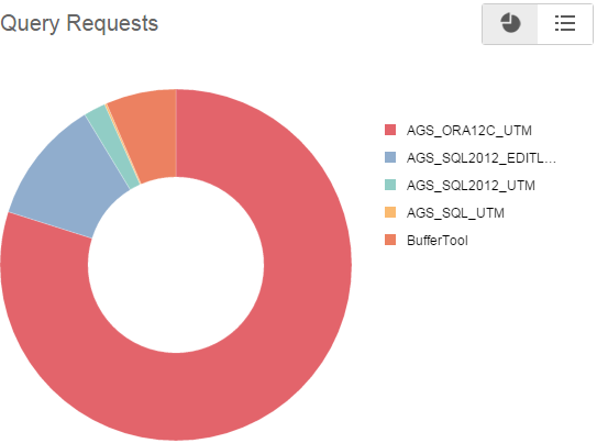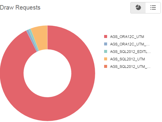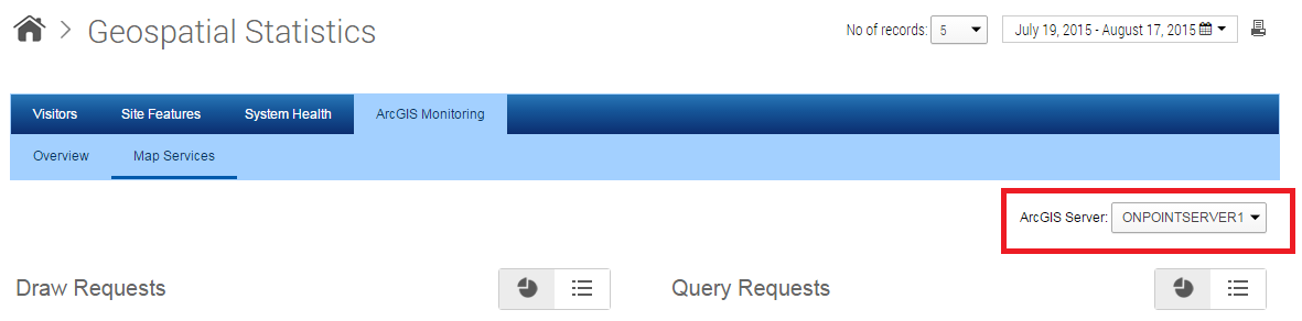 This section displays the various reports on map services for the selected ArcGIS server. You can select the required ArcGIS server from the drop-down list on the top-right corner of the Map Services section as shown in