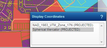 If the map administrator has configured additional coordinate systems for the map viewer, you can select any of the available coordinates systems to display the coordinates associated with the selected system.