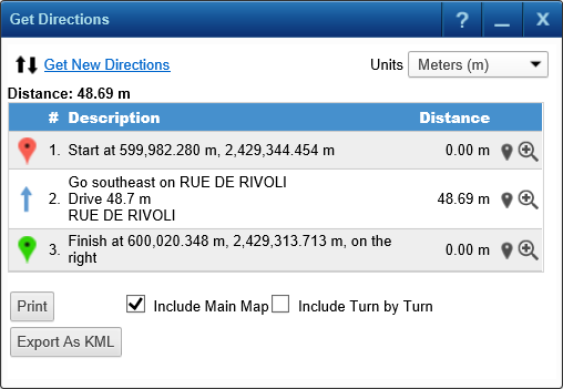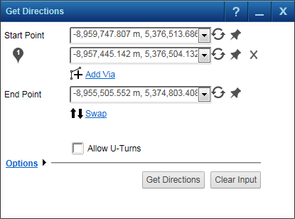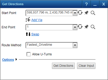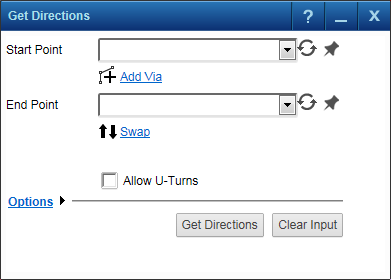 2. On the Map Tools pane, click the More Tools button and then select Get Directions. The Get Direction window opens.