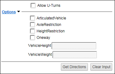 • Click the Options link to view additional settings for the route. This options are configured by the administrator so the options and labels will vary from the shown options.