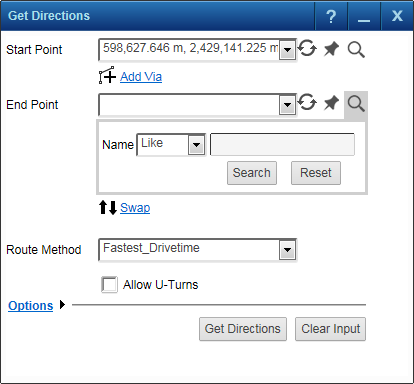 4. In the End Point field, click the Pushpin iconand click an area on the map. A flag displayed on the map to indicate the end point.