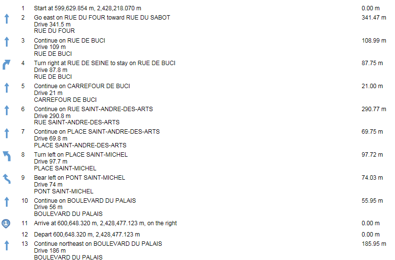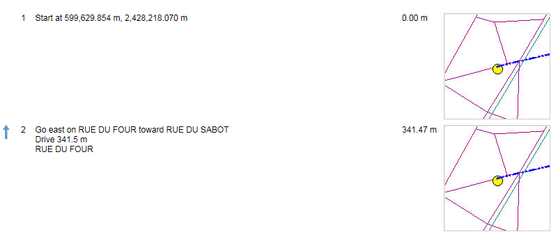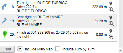 • If the Include Turn by Turn check box is selected, a map image for each turn is shown.