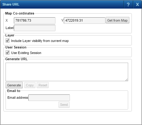 6. Click Generate. This creates a URL that contains the coordinates, label and features you have chosen.
