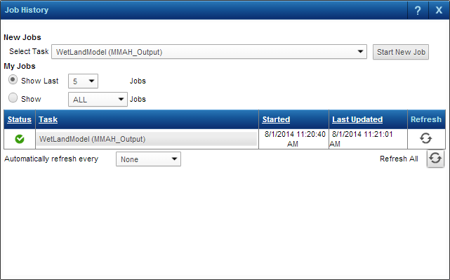 5. In the My Jobs window, click the Maximize iconto expand the window to show all the jobs that you have run. Click any job hyperlink to view its details.