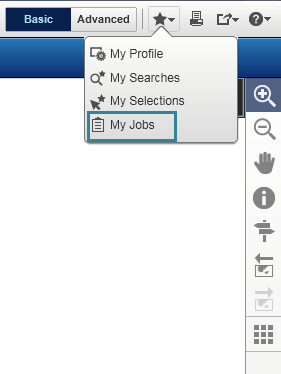 b. Click Favoritesin the upper left corner of the interactive map, and select My Jobs. The Job History window appears.