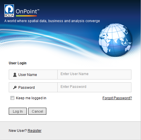 1. In upper-right corner of the map viewer, click the Login link. The Welcome to OnPoint screen appears.