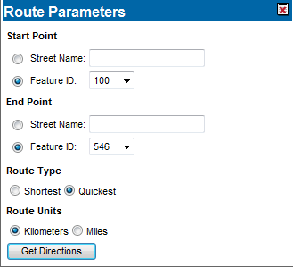 This functionality is only available if your map administrator has configured Bing Maps and routing has been enabled.