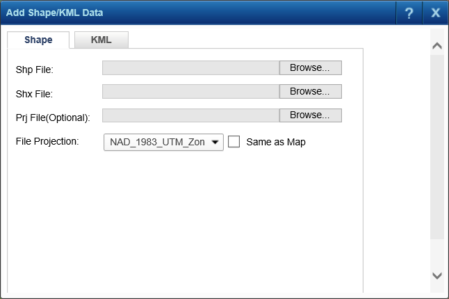 c. Select a file projection from the File Projection drop down or select the Same as Map check box to select the same projection as the map.