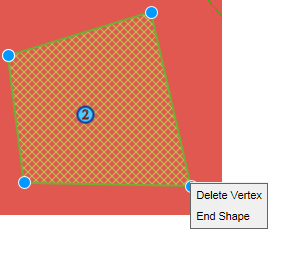 • To delete a vertex, move the mouse to point at the blue circle for that vertex point and either click Delete on the keyboard or right-click and click Delete.