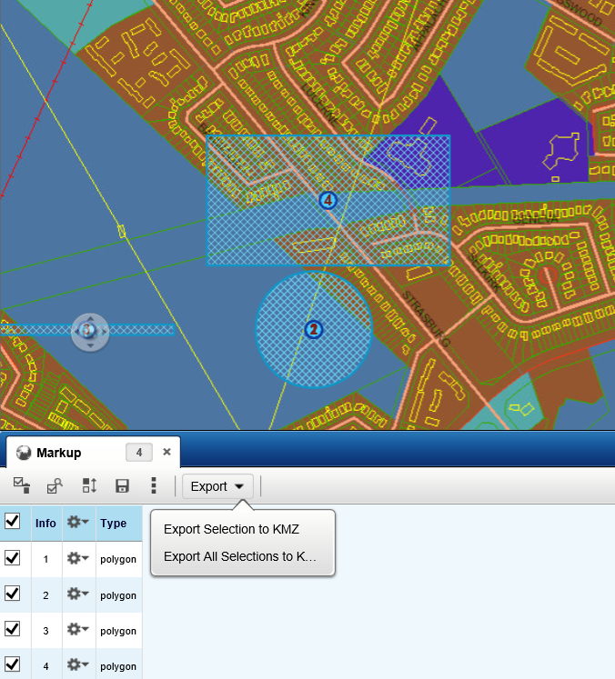 2. Scroll to the Export Selection to KMZ option. By default all markup objects you have created have their check box on the Results window selected.
