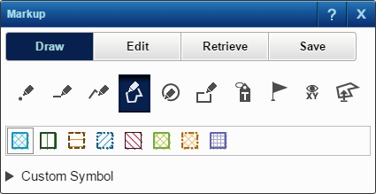 2. The Markup window opens containing all markup tools, symbols, and label styles that you can use to create markup shapes. If multiple symbols or label styles are available, select the type that you want to use on the map.