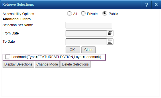 • Display Selections. This option displays the selection on the map.