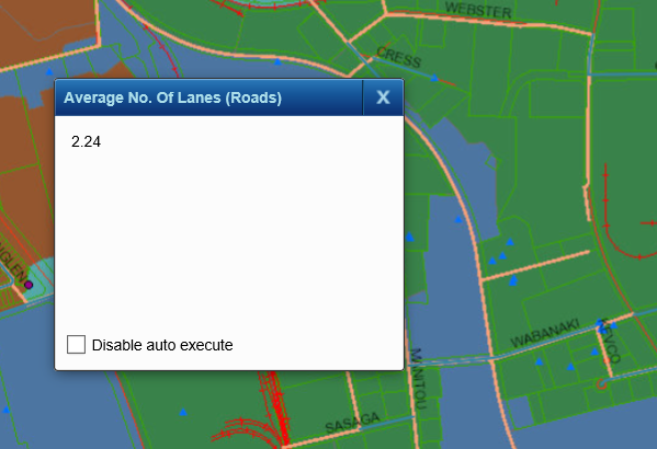 If your map administrator has configured a statistical tool to run automatically after you perform a selection or search on a layer (group of map features), you will notice a dialog box appear displaying the title of the statistical tool and a numeric result.