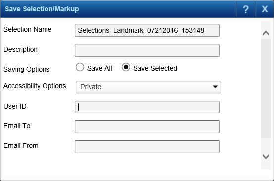 1. With your Results window open, click the Save Selections option. The Save Selection/Markup window opens.