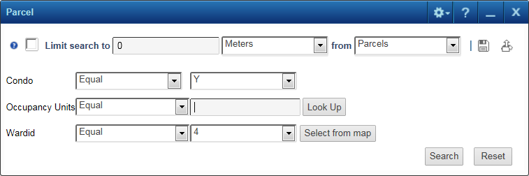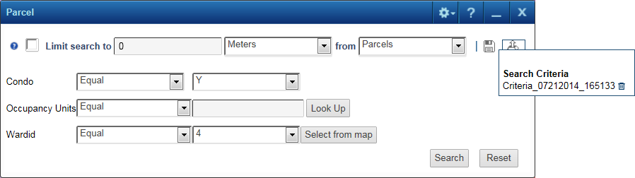 If the map administrator has enabled this feature, you can specify criteria for a search and save it to run a search with that criteria at a later time. This feature is particularly useful in searches containing many fields. In addition, if your administrator has enabled profiles, any search criteria you save are automatically associated with your profile. If you do not create a profile, any search criteria you save is associated with the default profile, which is visible to everyone. See