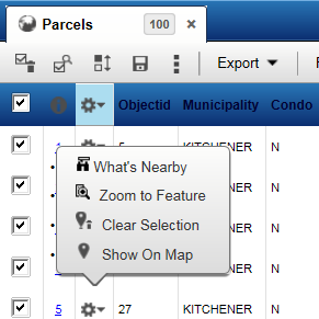 • In the Results window, which appears when you perform a search or selection, clickin the data entry for a map feature and then select What’s Nearby.