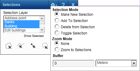 If your site administrator has enabled this functionality, you have the option of selecting features from multiple layers or feature groups. You know this functionality exists if you see a list box on the Selection window.