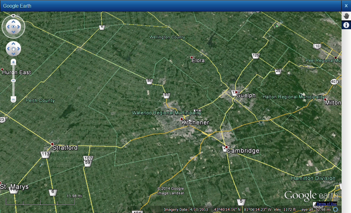 1. In the map viewer that currently showing a Google map, click the Earth button at the bottom left corner of the viewer. If you have not installed the plugin, the Download the Google Earth Plugin prompt is displayed.