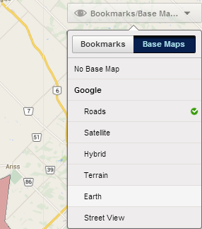 1. In the top right corner of the map viewer, click Bookmarks/Base Maps and then click Base Map. In Base Map, under Google, click Earth.