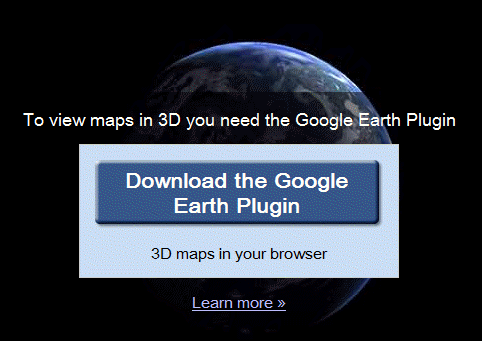 If you have not installed the Google Earth plugin previously, you are prompted to install the plugin required to view the Google Earth three-dimensional map when you click the Earth button in the map viewer.