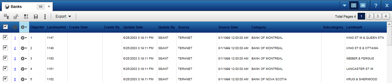 • In the Results window, click the column header whose data you want to sort. The data is then listed according to the order of that column.When the list of selected items opens, either the total number of pages or the total number of items display (depending on the selection window type). Only the items selected on the first page correspond to a number on the map. Click the page numbers at the top of the window to move to that page.