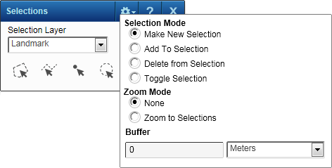 5. In the Selection Mode field, select the option that defines how items are added or removed from the list when you select features on the map. The options are the following: