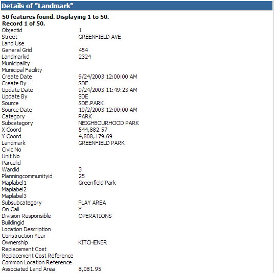 The More Information window is blank if no information is associated with the location that you clicked on the map.