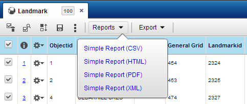 Simple Report (CSV) Simple Report (HTML) Simple Report (PDF) Simple Report (XML)