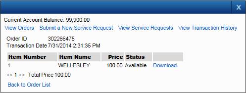 3. Click the order ID to view all documents that were purchased in that order. If the documents are still available for downloading, the Download link will display.